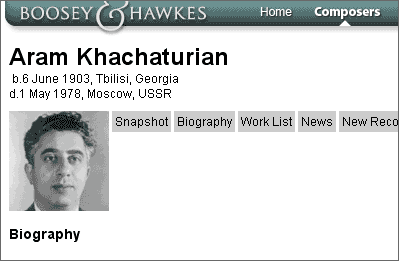 External Link ...to the Aram Khachaturian pages at Boosey & Hawkes (Click image)